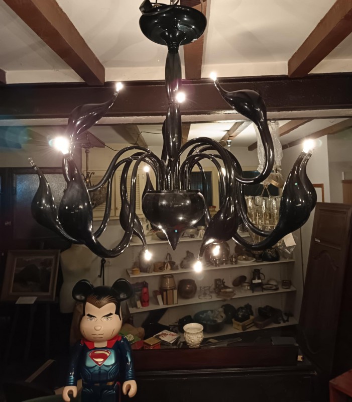 en métal laqué noir imitant le verre de couleur