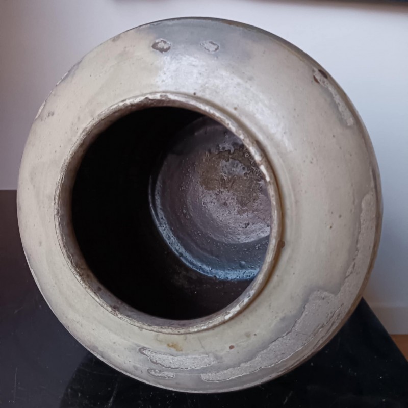 Jarre en grès émaillé beige à décor en émail brun d’un caractère