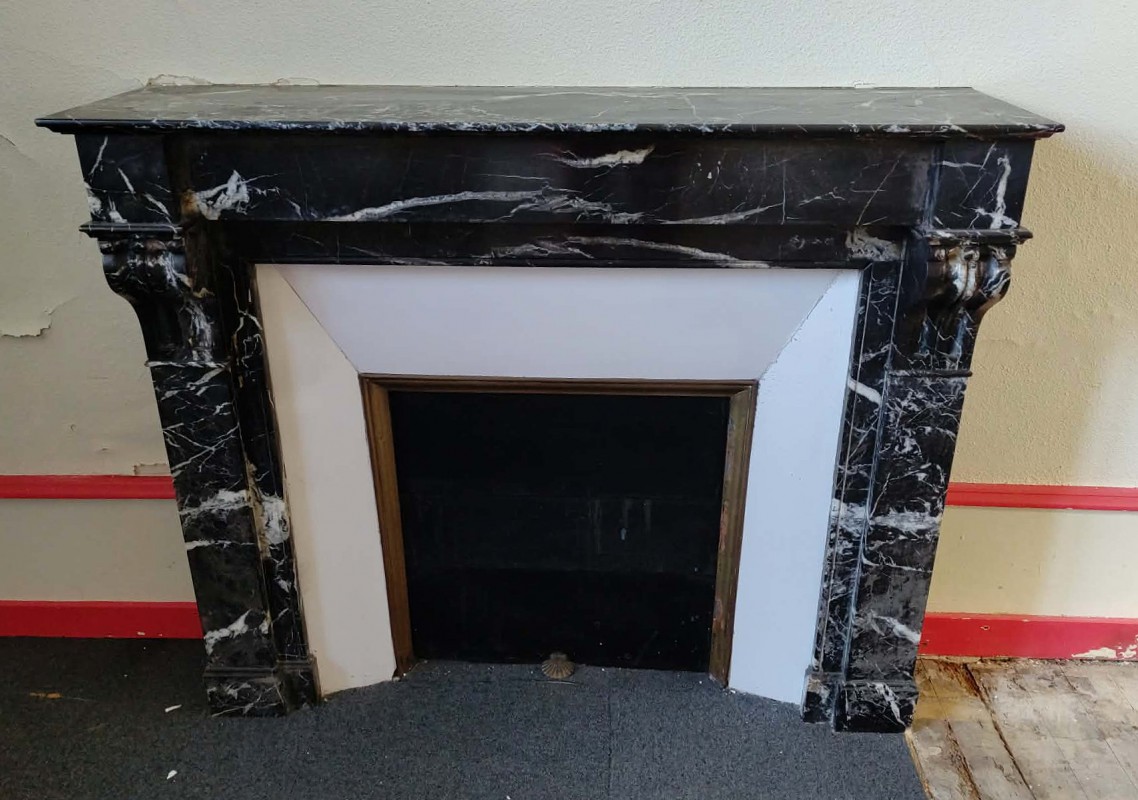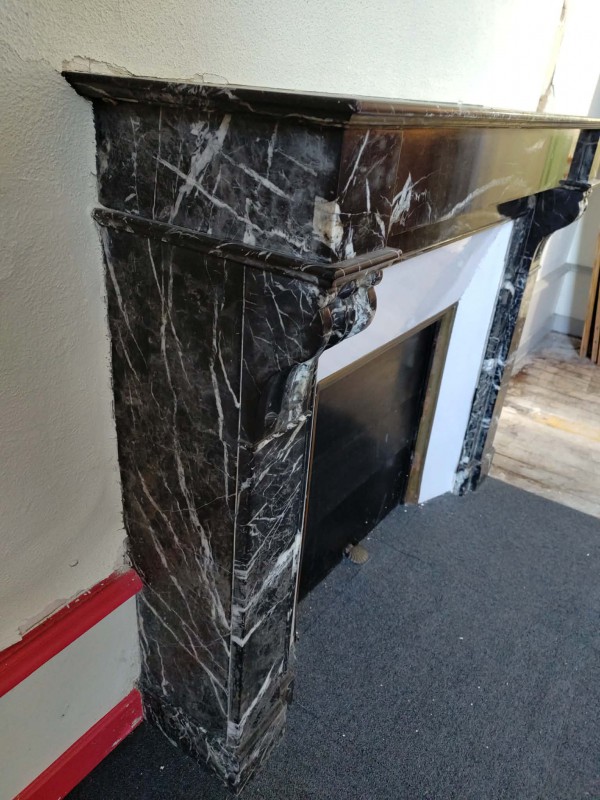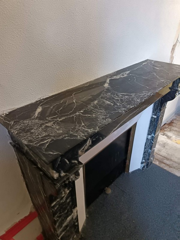 Cheminée en marbre noir à veines blanche (marbre noir maquina ?)