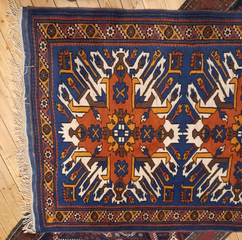 Champ fond ivoire et bleu à trois motifs stylisés dit « Aigle Caucasien »
