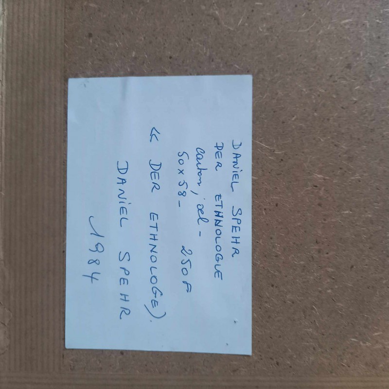 Huile sur carton ondulé, titré et daté 1984 au dos de l’encadrement sous-verre 65x72
