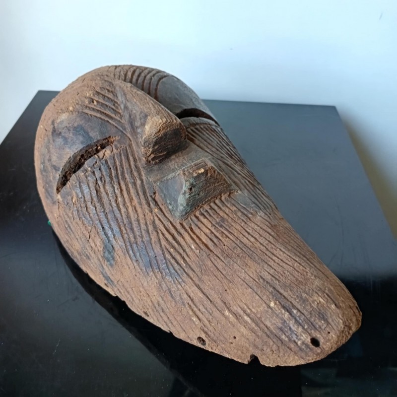 Enfin, on retrouve la forme caractéristique de ces masques sur d’autres objets rituels utilisés par les sociétés secrètes comme les boucliers.