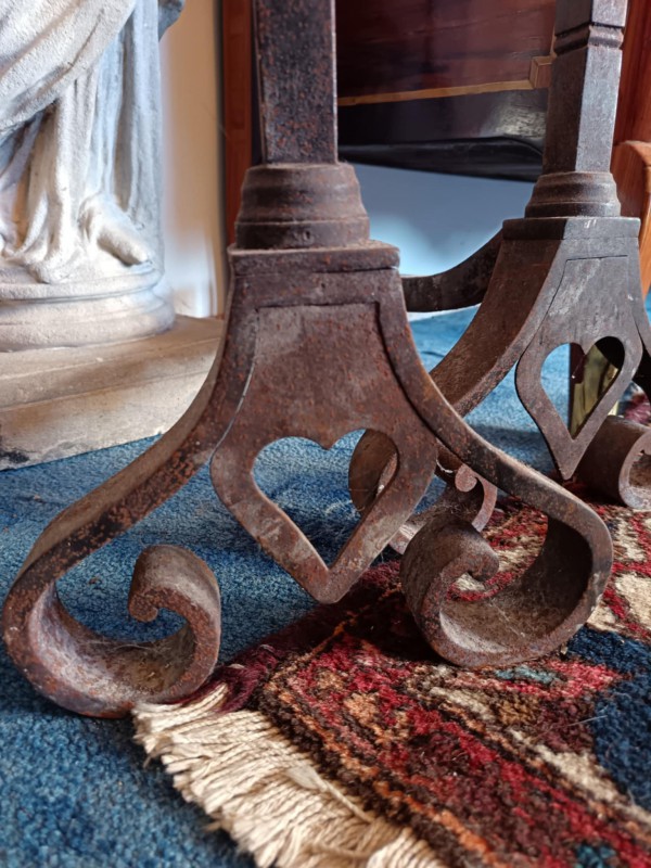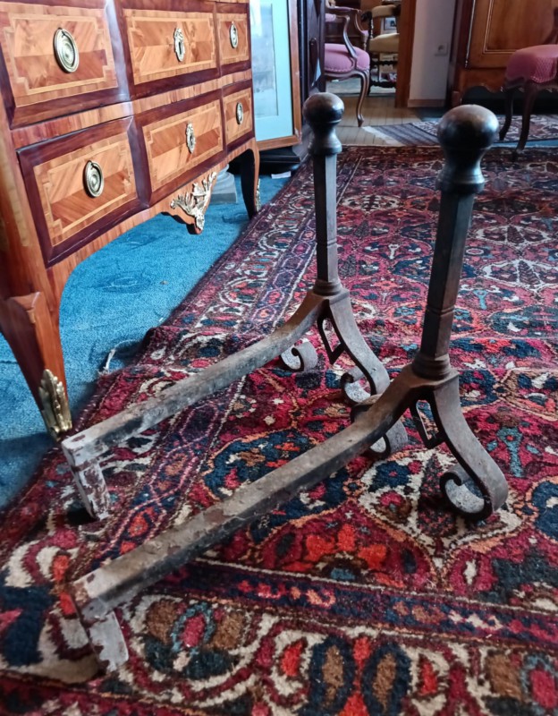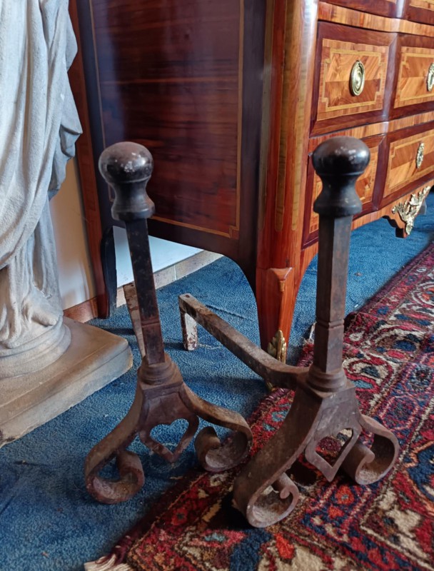 Paire de Chenets, Têtes décor de cœur évidé, XIXe