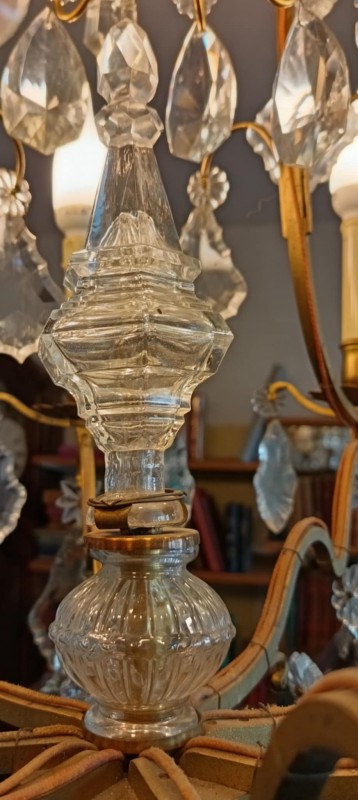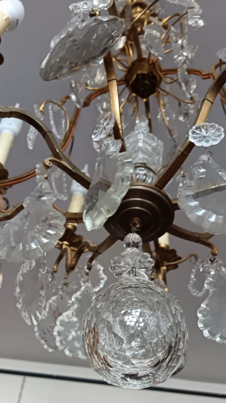 Lustre à pampilles à huit feux en chandelier et une ampoule centrale