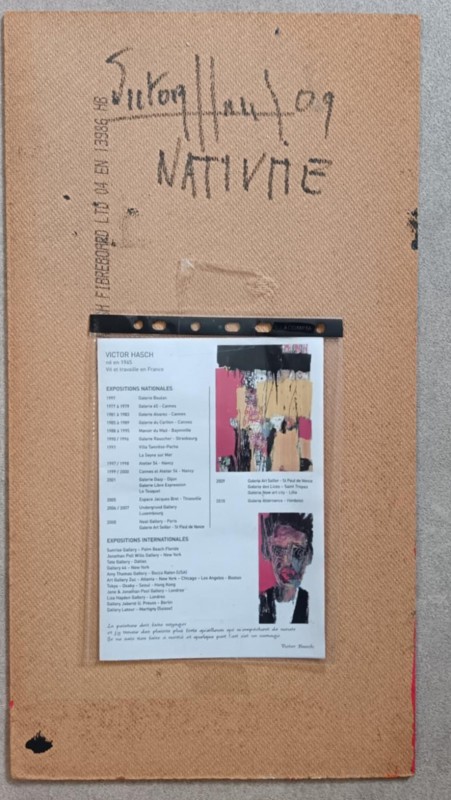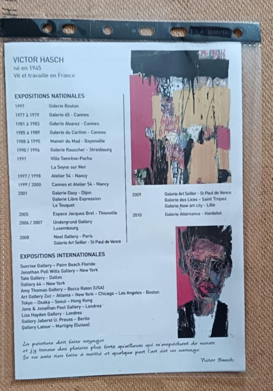 Accompagné d’une feuille mentionnant les principales expositions nationales et internationales du peintre, et d’une citation de ce dernier définissant son art « La peinture doit faire voyager, et j’y trouve des plaisirs plus forts qu’ailleurs qui m’empêchent de mourir. Je ne sais rien faire à moitié et quelque part l’art est un carnage. »