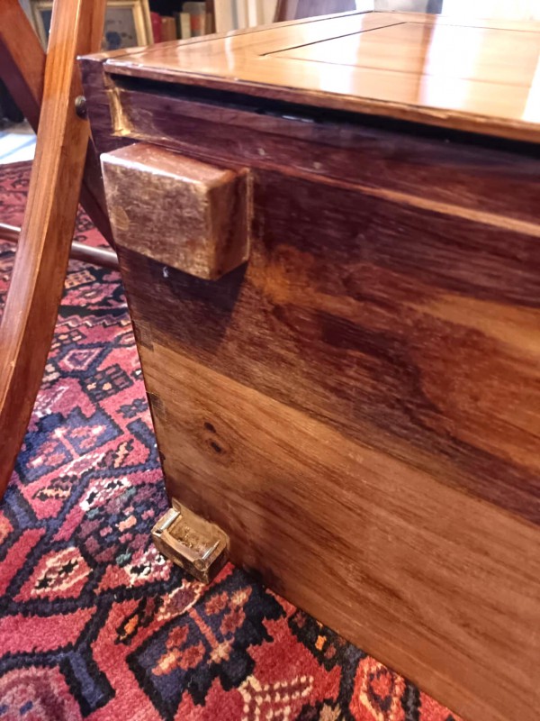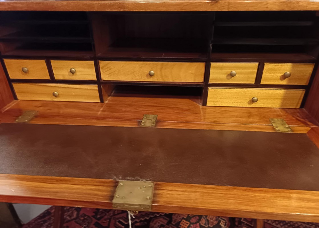 Meuble secrétaire à abattant en deux parties : scriban avec abattant et tréteaux.