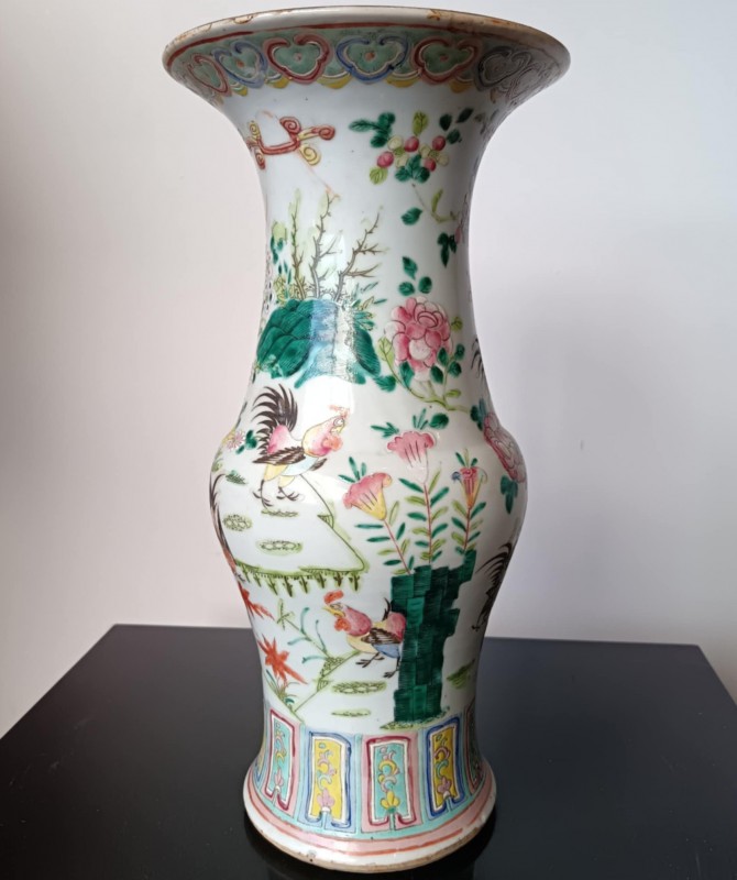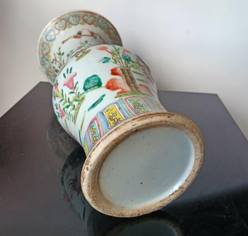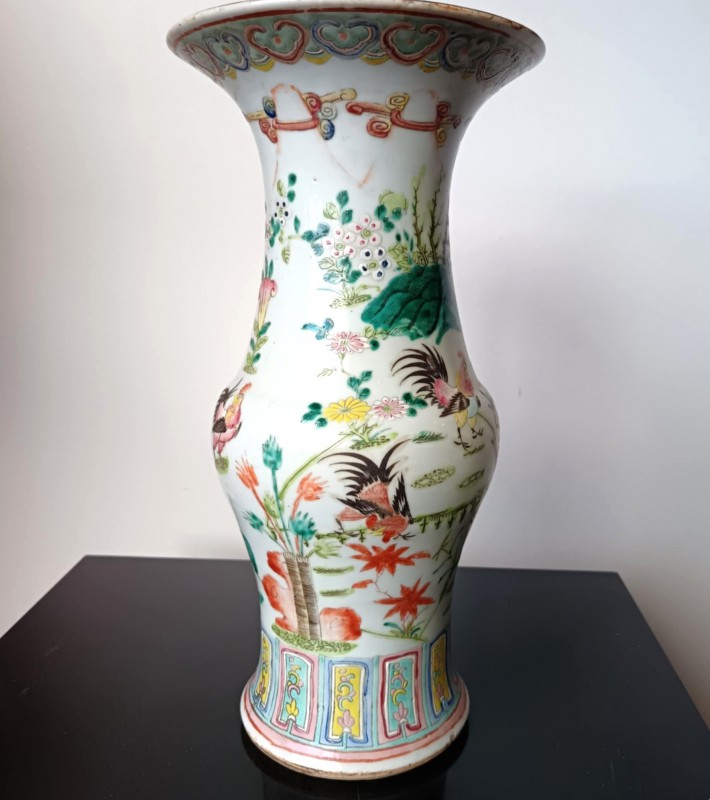 Vase balustre à col évasé en porcelaine émaillée polychrome,