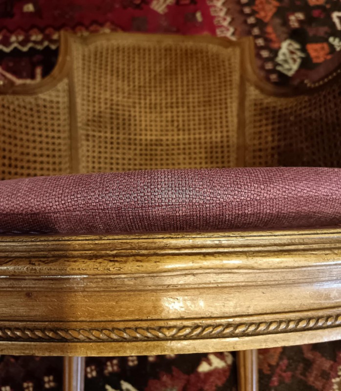 Assise et dossier cannés, cannage doublé sous les accotoirs