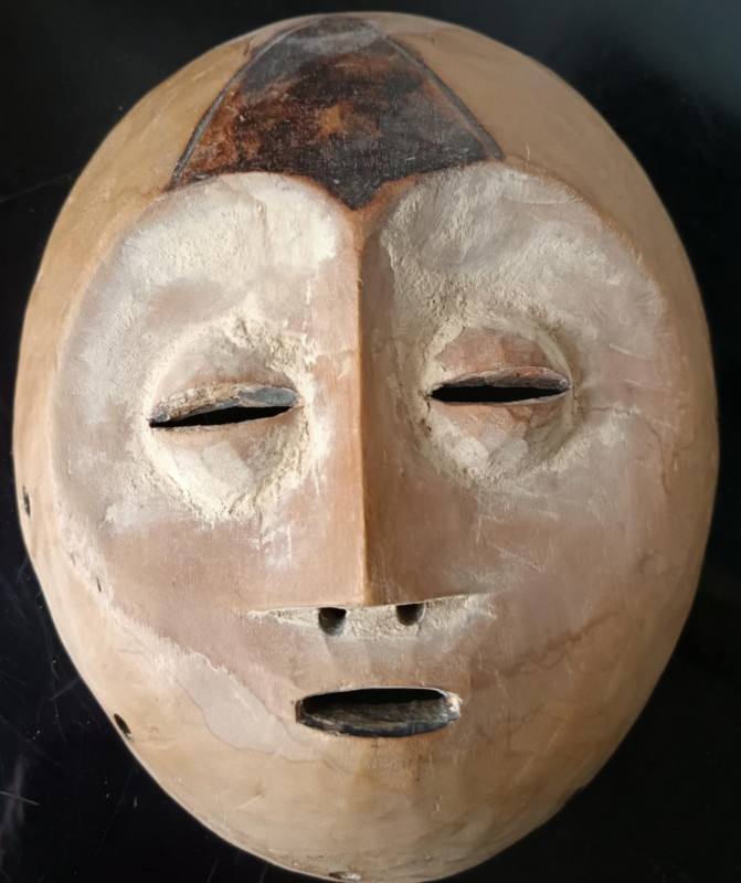 Les sculpteurs africains de la tribu Lega se sont exprimés au moyen de formes épurées et minimalistes. Les surfaces lisses et polies font allusion à la nature raffinée et perfectionnée de l'initié Bwami. Les visages représentés sur ces masques sont souvent concaves, en forme de cœur, avec des yeux en forme de cauris (coquillages), entourant un nez stylisé long et fin.
